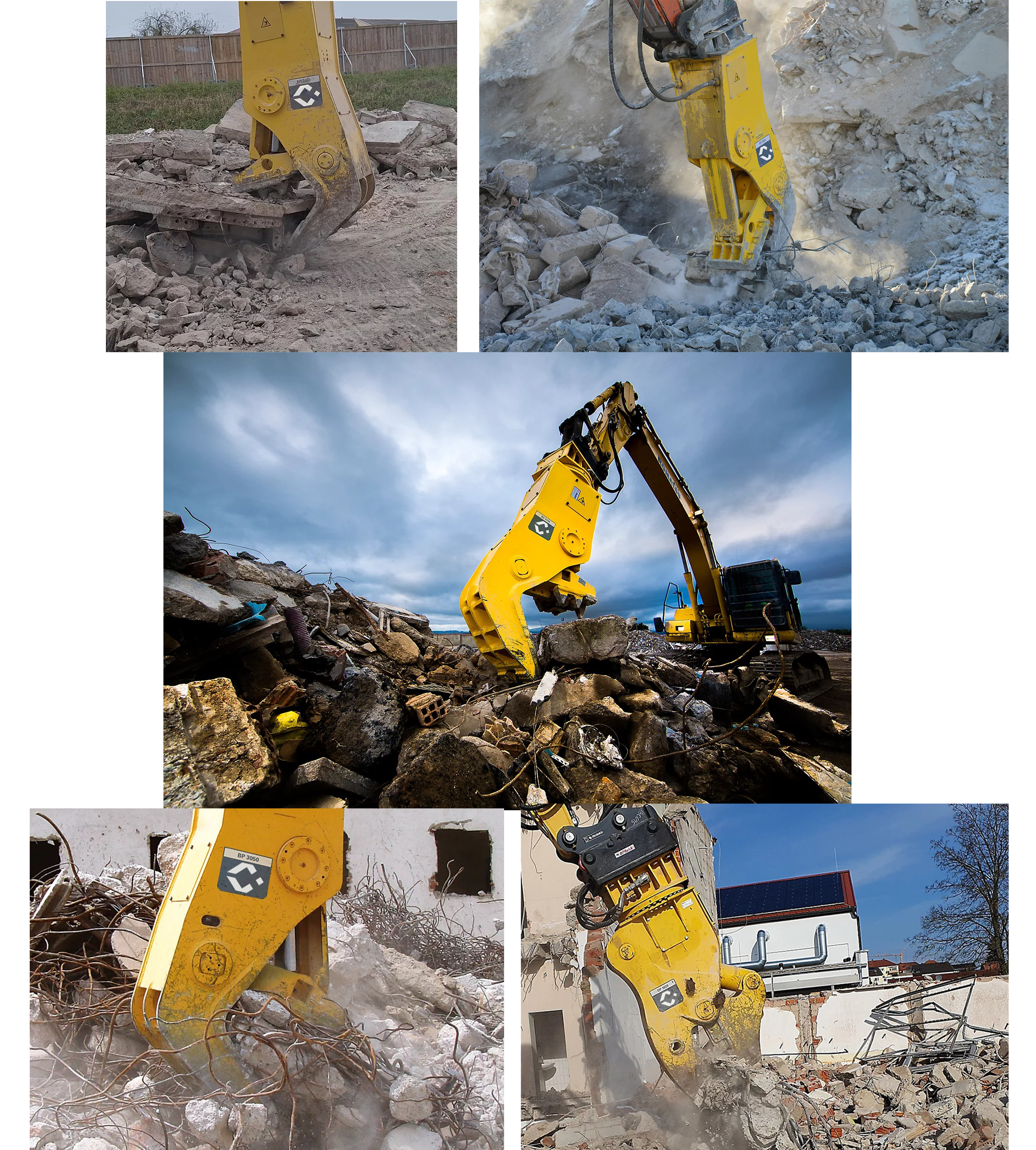 Ideal for interior demolition, narrow urban worksites, or environmentally sensitive areas requiring high-precision, low-impact methods.The equipment (especially lighter models without a rotator) is compact, flexible, and allows for precise operation. Combined with the hydraulic rotation function, it enables precise localized crushing without moving the excavator chassis, effectively avoiding damage to structures being retained or the surrounding environment.