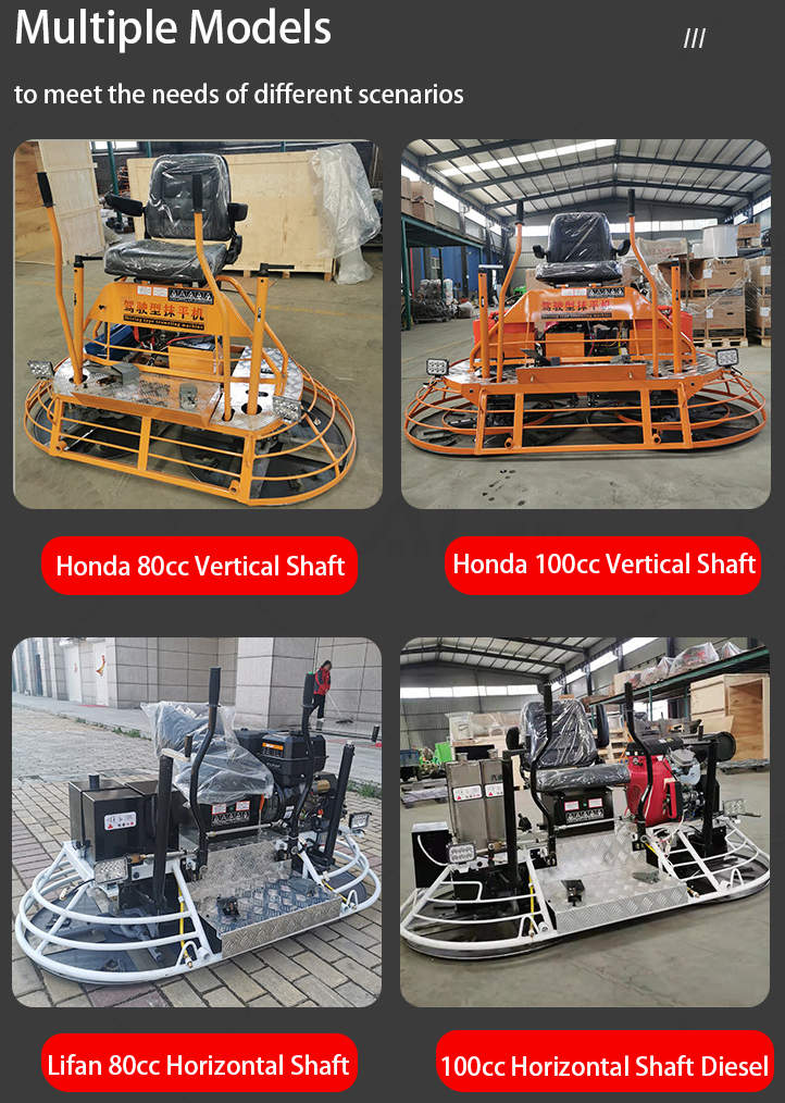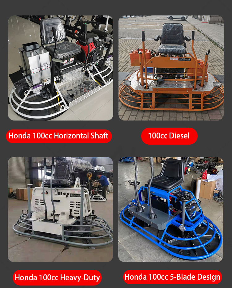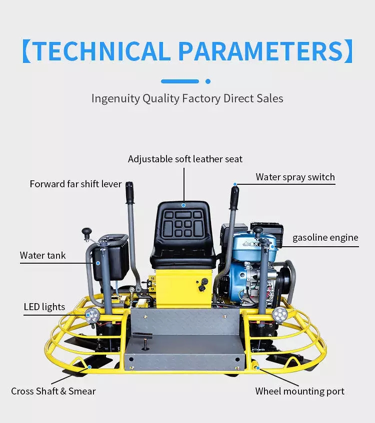 Ideal for large-scale concrete finishing,the Ride-on Power Trowel delivers high efficiency and superior surface quality. Powered by a 24HP 4-stroke engine and an 8-blade system, it enables precise leveling and smoothing. Key features include a 1000mm pan, electric start, and a durable structure. Designed for superflat floors, it ensures productivity with ergonomic operation, integrated water tank, and all-condition reliability.