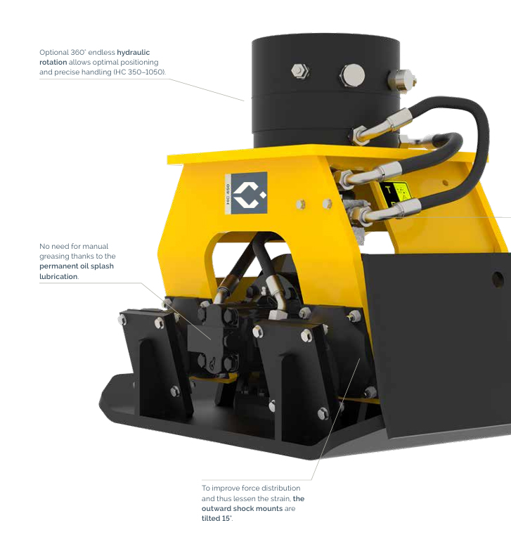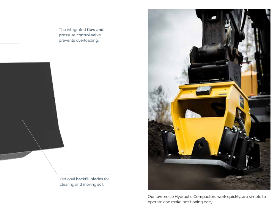 The hydraulic plate compactor is a high-performance excavator attachment designed for efficient and safe compaction operations in conditions where traditional compaction equipment struggles. It transforms the excavator into a powerful compaction machine, particularly suitable for soil and gravel compaction in pipeline backfill, road/railway slopes, trenches, and confined spaces. With vibration force and compaction depth far exceeding those of ordinary plate compactors, this product can easily meet the compaction requirements of high-grade foundations. With its low noise level, quick connection, and 360-degree rotation, the HB Series significantly improves operational efficiency and flexibility while ensuring construction safety, making it an ideal choice for modern infrastructure projects.